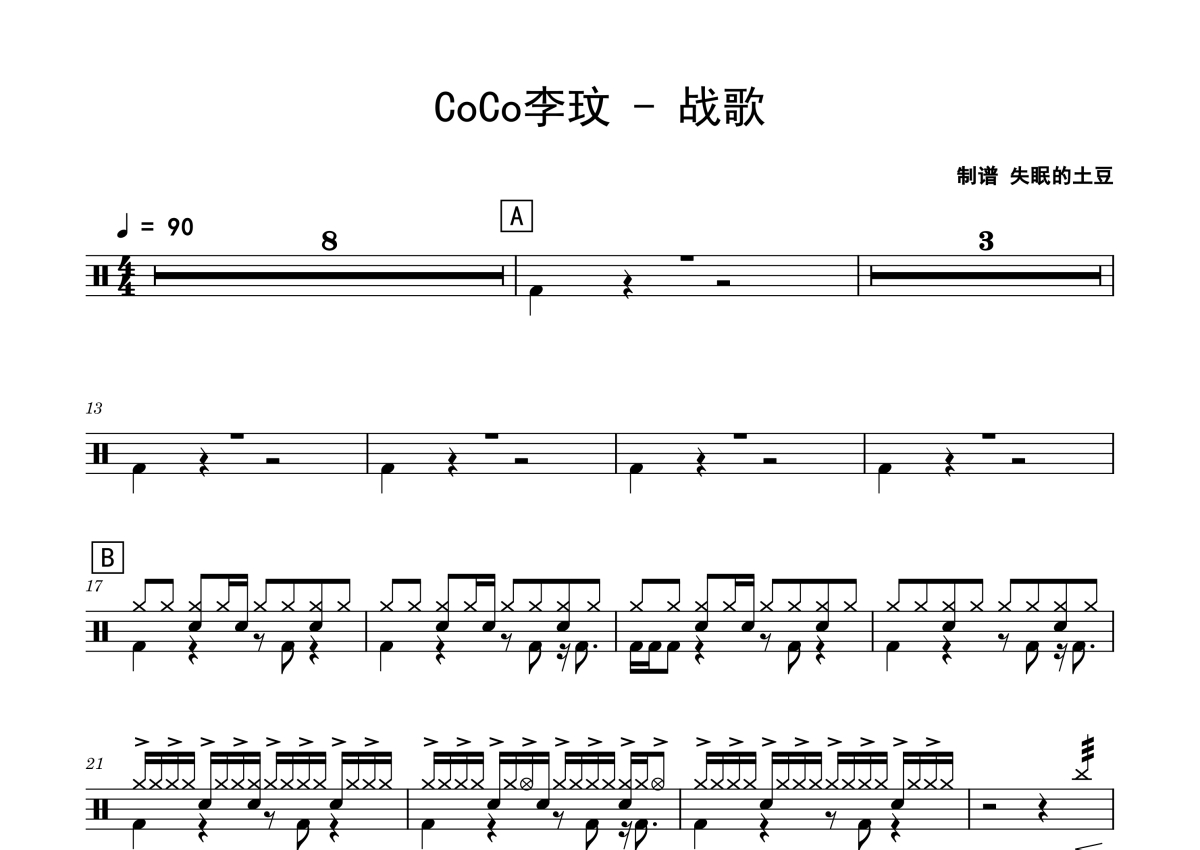 CoCo李玟《战歌》鼓谱 - 架子鼓谱