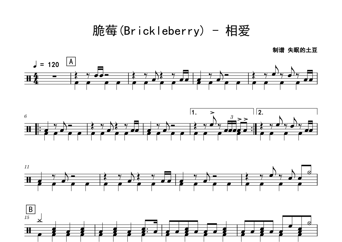 脆莓(Brickleberry)《相爱》鼓谱 - 架子鼓谱