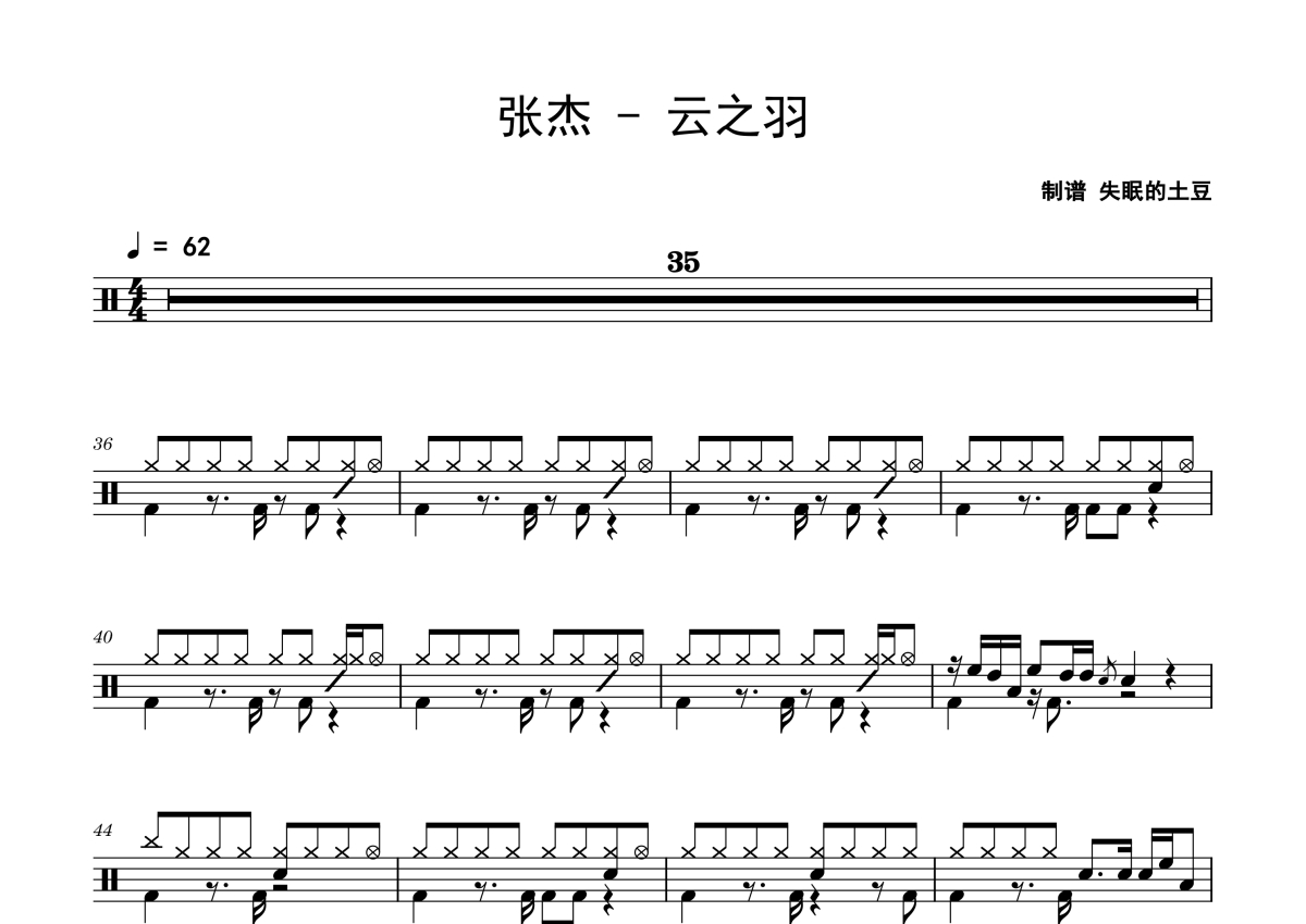 张杰《云之羽》鼓谱 - 架子鼓谱
