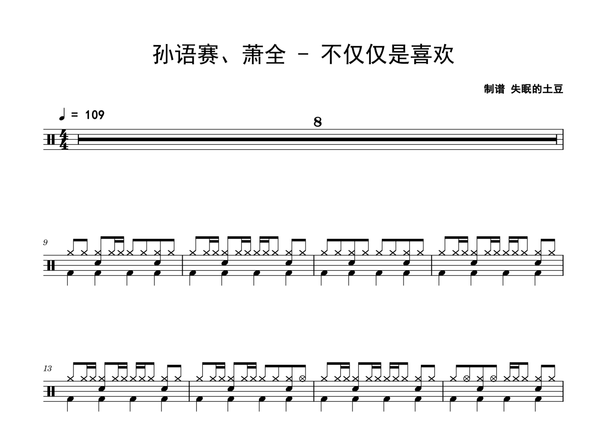 孙语赛、萧全《不仅仅是喜欢》鼓谱 - 架子鼓谱