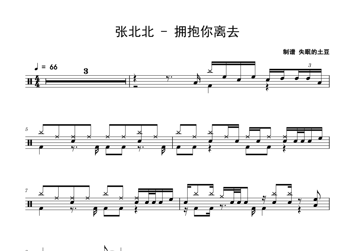 张北北《拥抱你离去》鼓谱 - 架子鼓谱