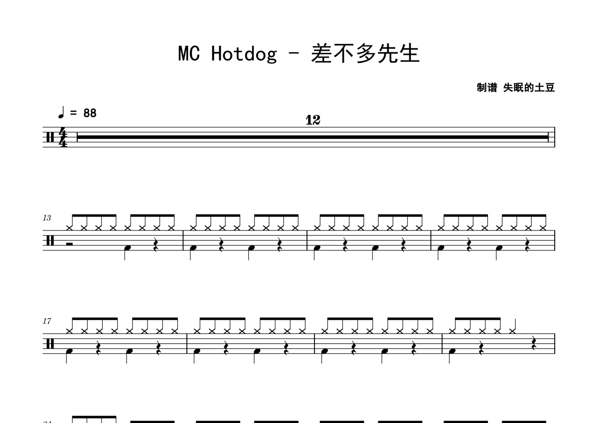 MC Hotdog《差不多先生》鼓谱 - 架子鼓谱