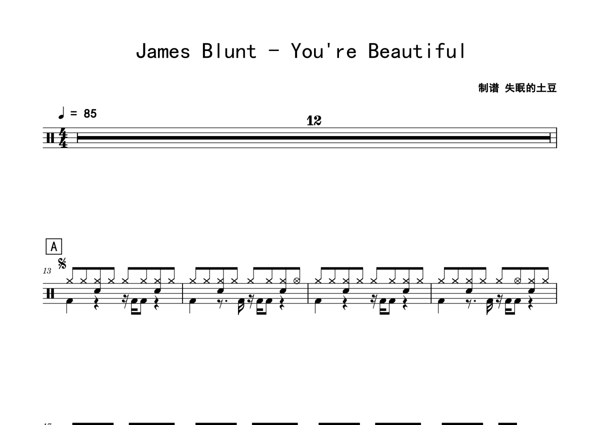 James Blunt《You're Beautiful》鼓谱 - 架子鼓谱