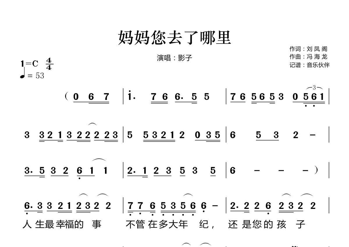 《妈妈您去了哪里》是影子演唱的一首歌曲,这份简谱共有两张高清图谱,图谱由 @音乐伙伴 编配上传。