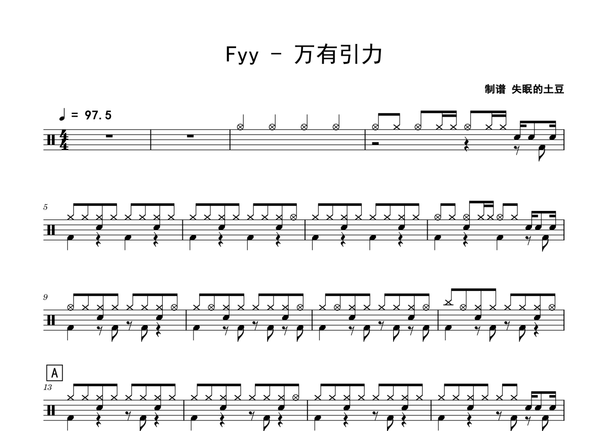 Fyy《万有引力》鼓谱 - 架子鼓谱