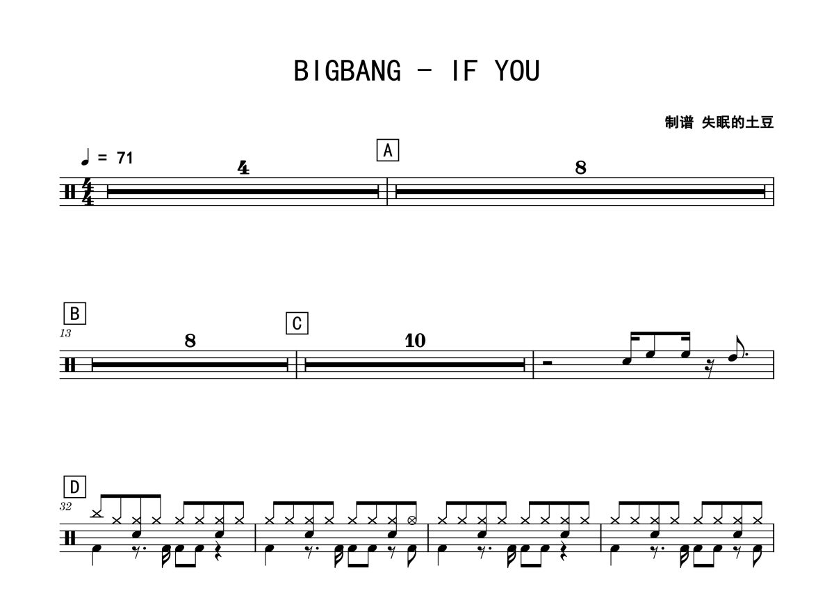 BIGBANG《IF YOU》鼓谱 - 架子鼓谱