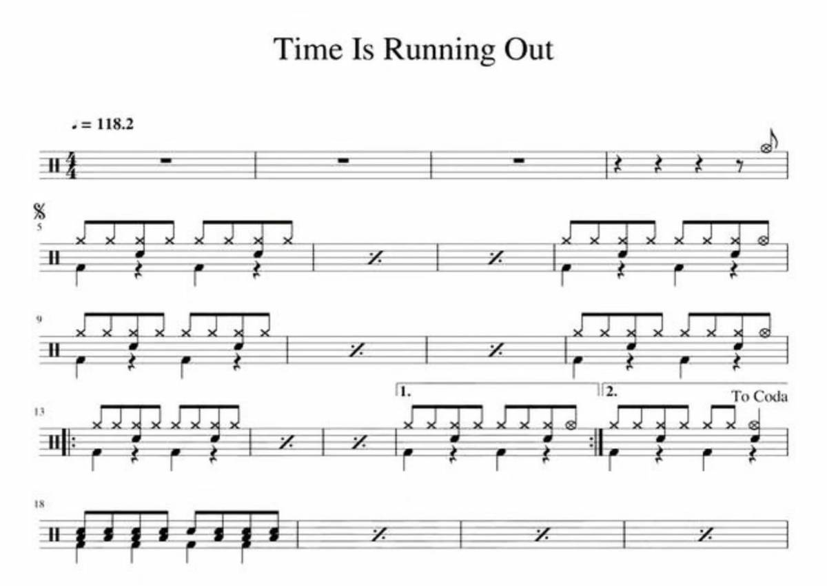 《time is running out》是MUSE演唱的一首歌曲,这份鼓谱共有两张高清图谱,图谱由 @打鼓谱 编配上传,图谱使用五线谱编配,使用这份time is running out架子鼓谱,你将能够轻松地敲打出这首MUSE的time is running out,快来尝试吧。I think I'm drowning asphyxiated