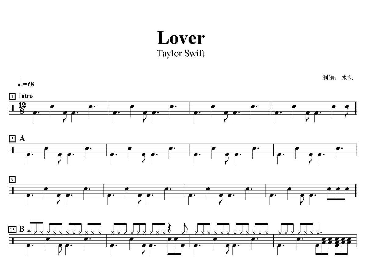 Taylor Swift《Lover》鼓谱 - 架子鼓谱