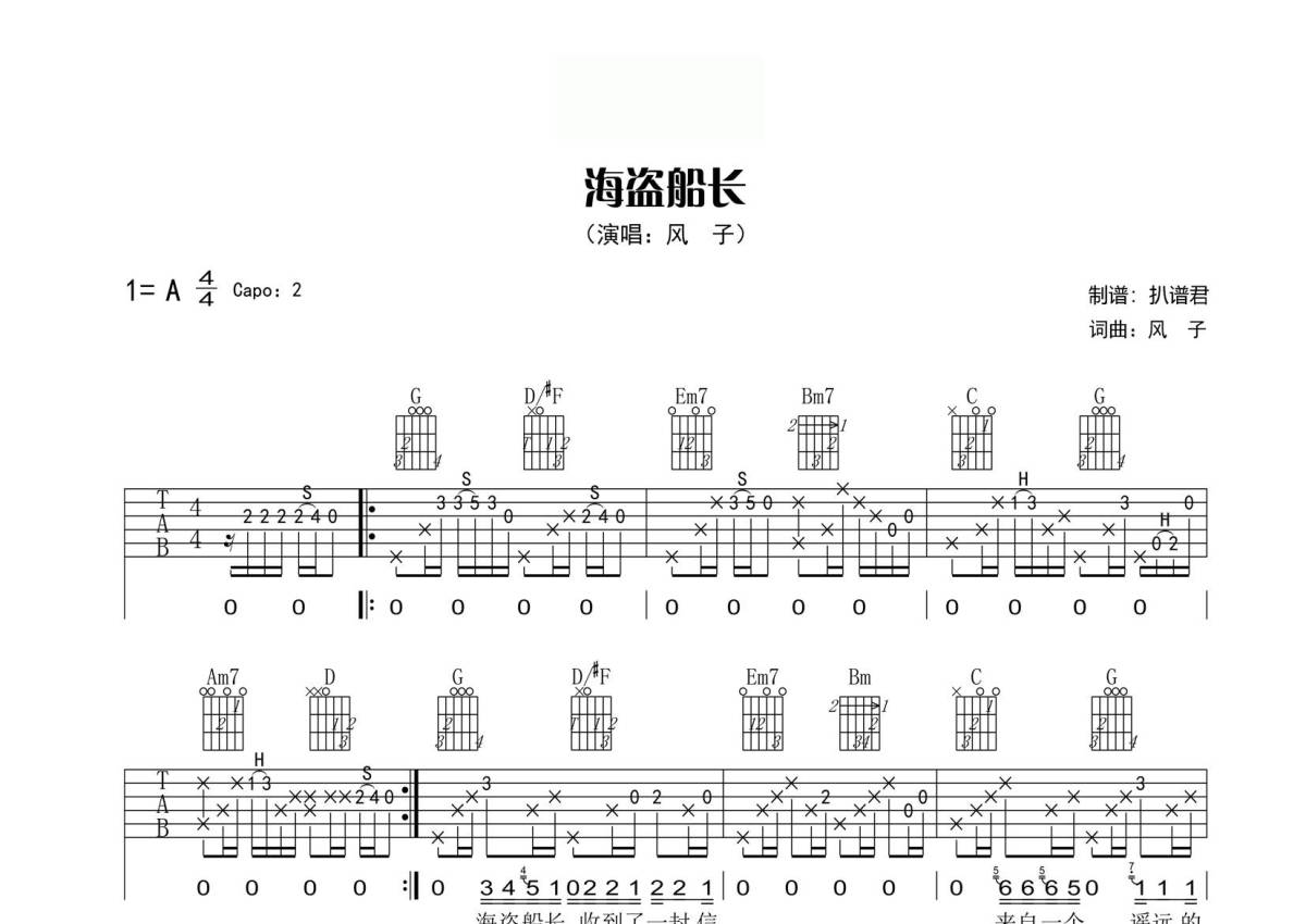 风子《海盗船长》吉他谱 - G调弹唱六线谱