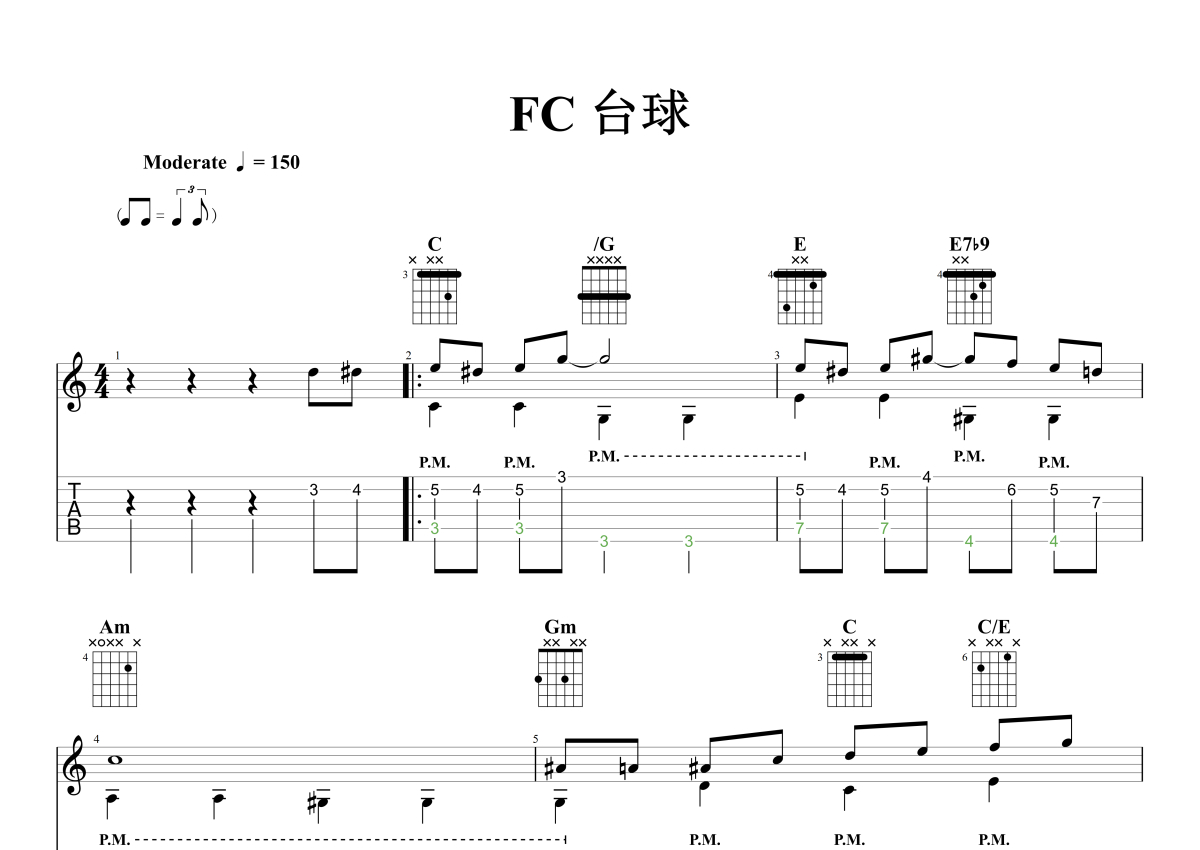 《FC台球》是任天堂红白机演唱的一首歌曲,石头音乐原版记谱,拍号为4/4拍,歌曲速度为每分钟150拍,本吉他谱采用的是C调指法编配,这份吉他谱共有两张高清图谱,图谱由 @石头音乐 编配上传,图谱使用六线谱编配,曲谱配备了相关的音频提供试听,使用这份FC台球吉他谱,可以让你更加方便地掌握这首歌曲的演奏技巧,快来尝试吧。