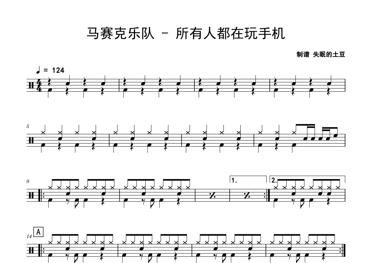 马赛克乐队《所有人都在玩手机》鼓谱 - 架子鼓谱