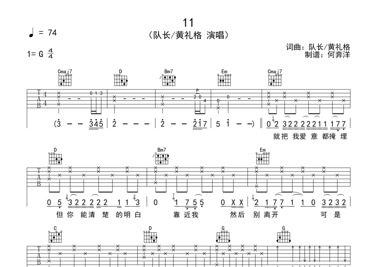 队长/黄礼格《11》吉他谱 - G调弹唱六线谱