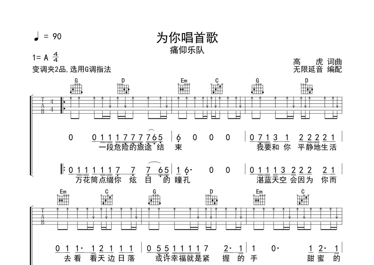 痛仰乐队《为你唱首歌》吉他谱 - G调弹唱六线谱