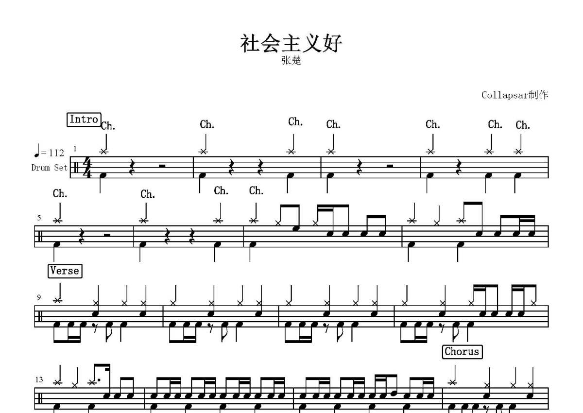 张楚《社会主义好》鼓谱 - 架子鼓谱