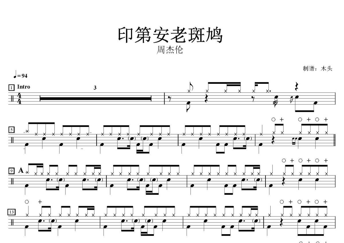 周杰伦《印第安老斑鸠》鼓谱 - 架子鼓谱