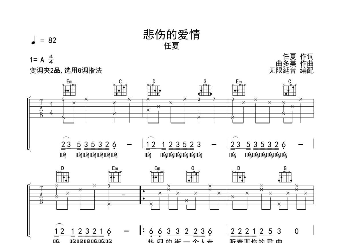 任夏《悲伤的爱情》吉他谱 - G调弹唱六线谱