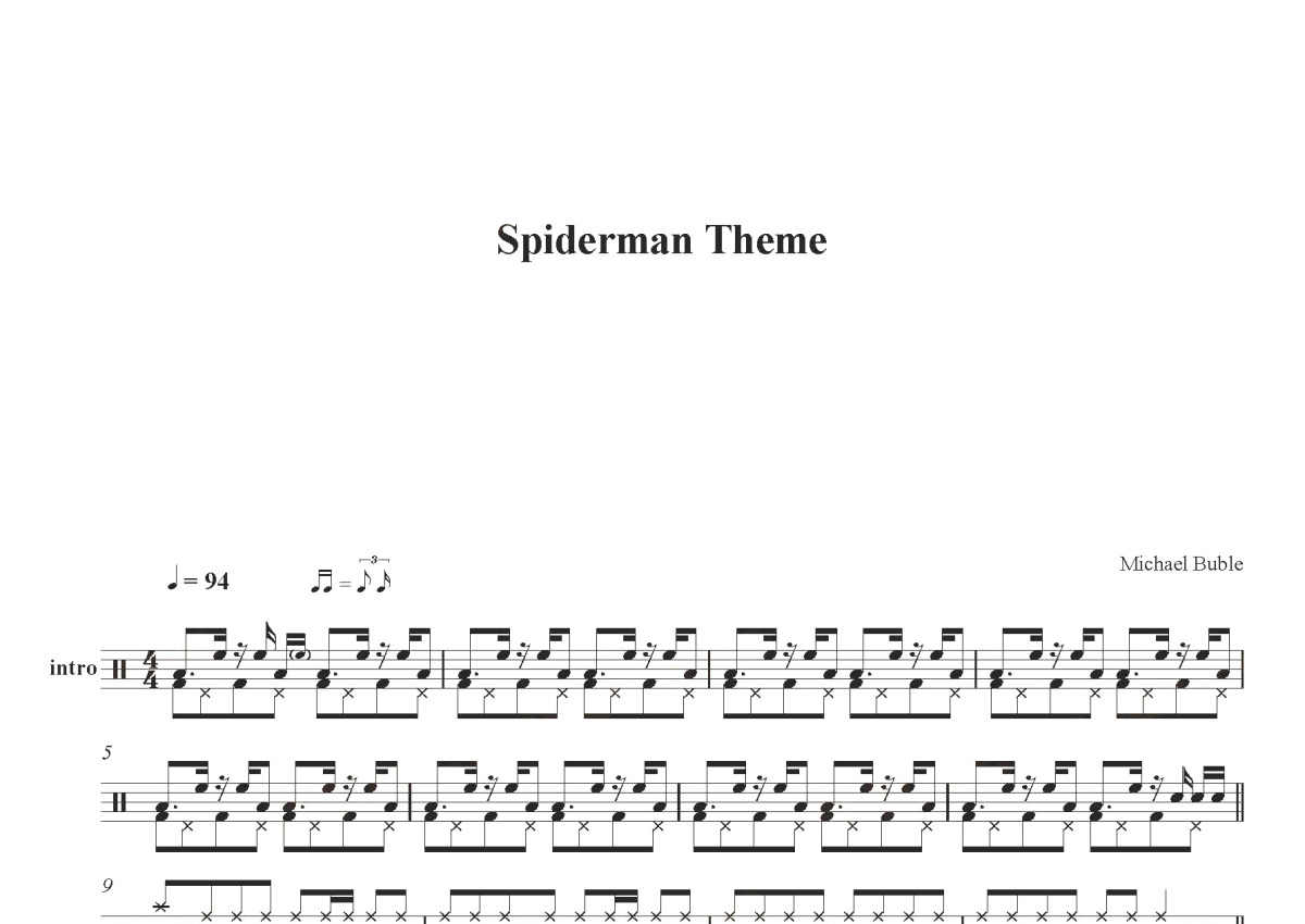 Michael Buble《spiderman theme》鼓谱 - 架子鼓谱
