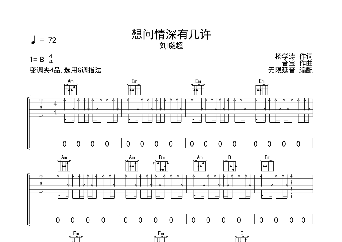 刘晓超《想问情深有几许》吉他谱 - G调弹唱六线谱