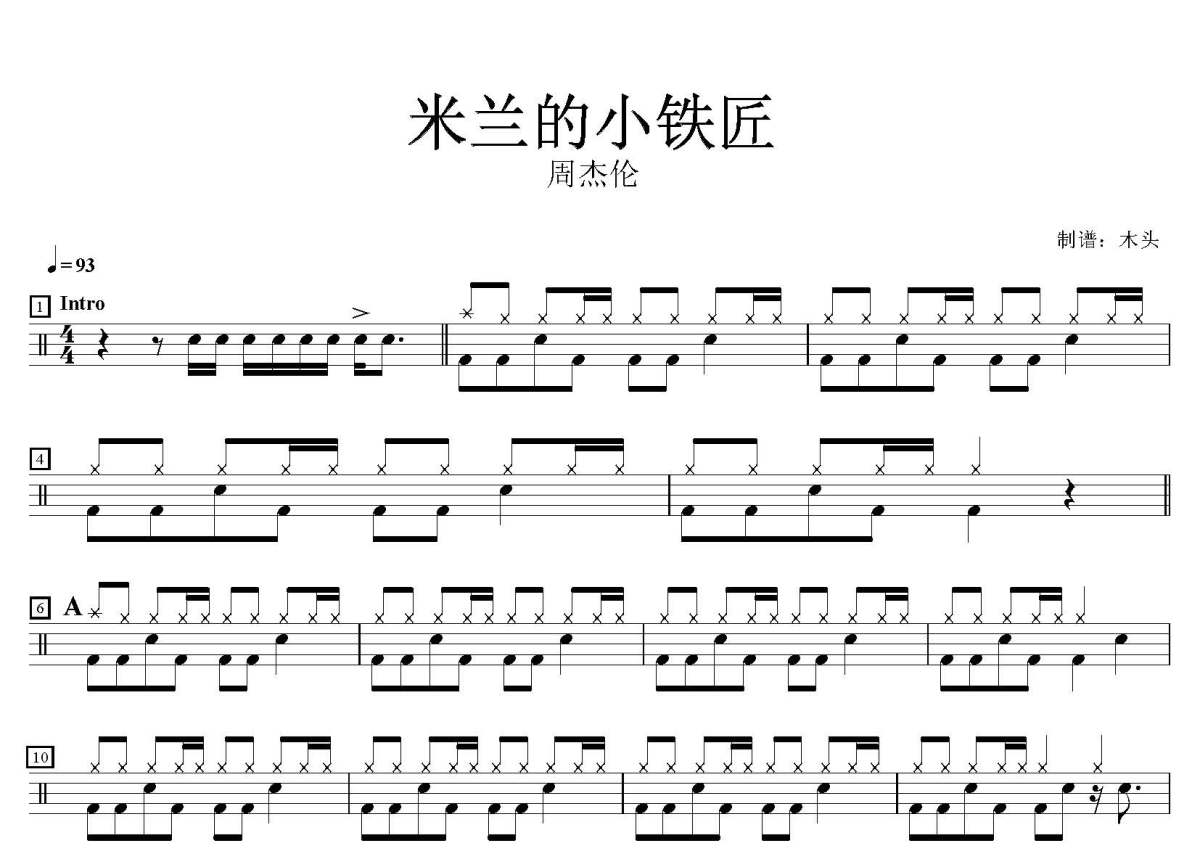 周杰伦《米兰的小铁匠》鼓谱 - 架子鼓谱