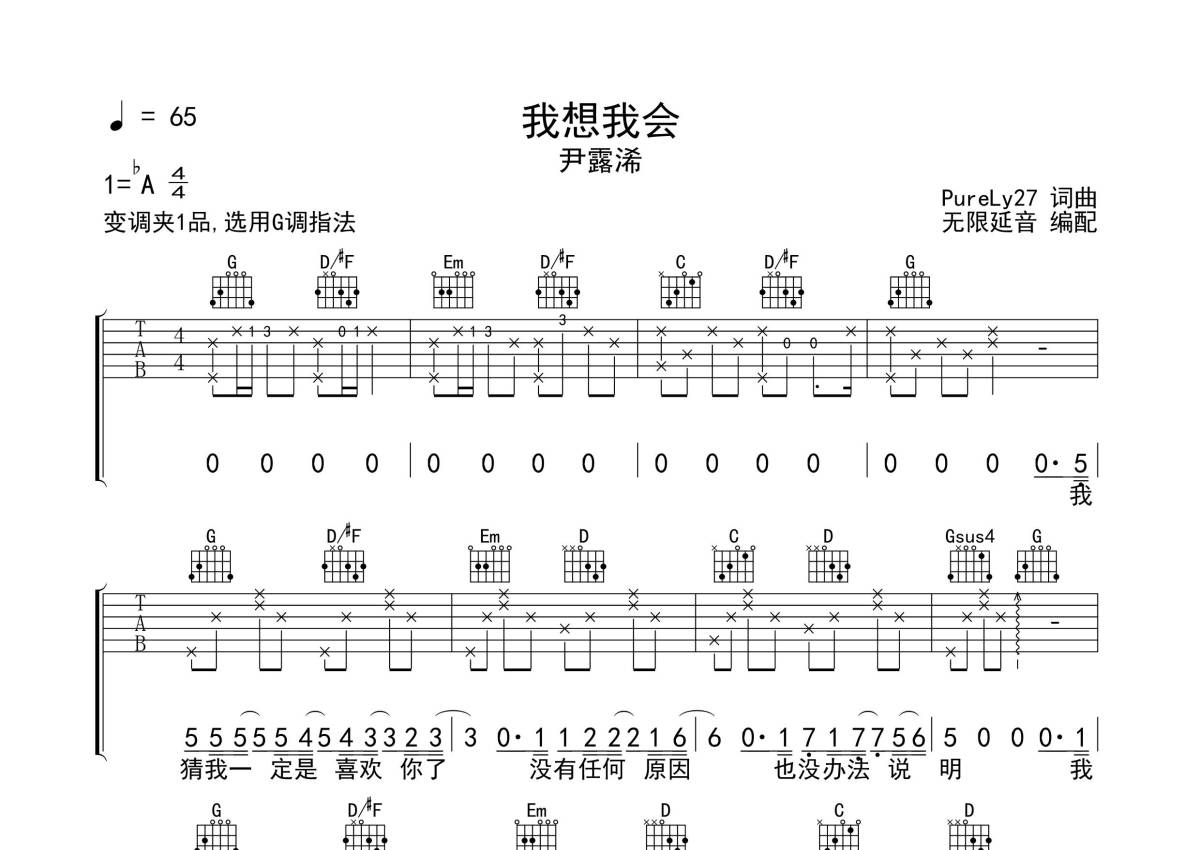 尹露浠《我想我会》吉他谱 - G调弹唱六线谱