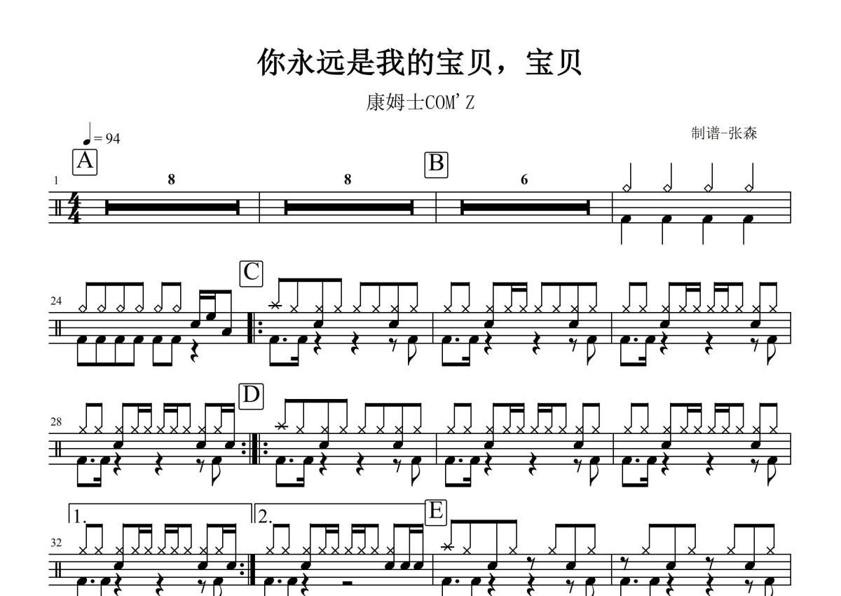 康姆士COM'Z《你永远是我的宝贝,宝贝》鼓谱 - 架子鼓谱