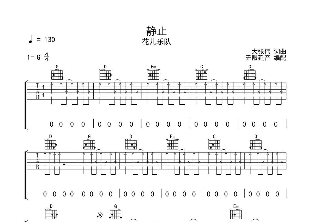 花儿乐队《静止》吉他谱 - G调弹唱六线谱