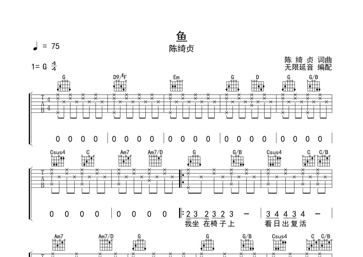 陈绮贞《鱼》吉他谱 - G调弹唱六线谱