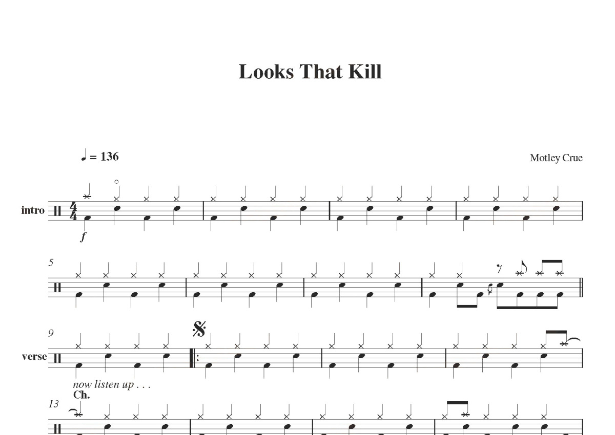 Motley Crue《looks that kill》鼓谱 - 架子鼓谱