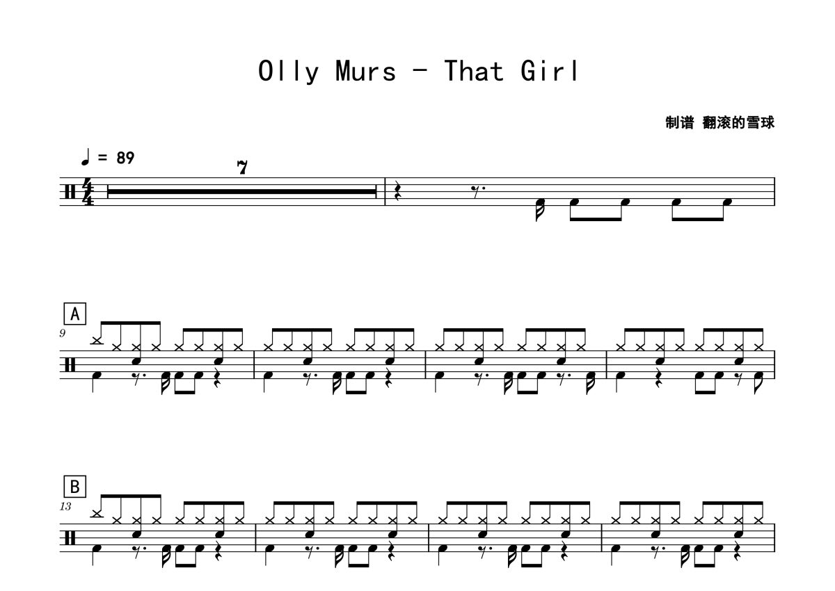Olly Murs《That Girl》鼓谱 - 架子鼓谱