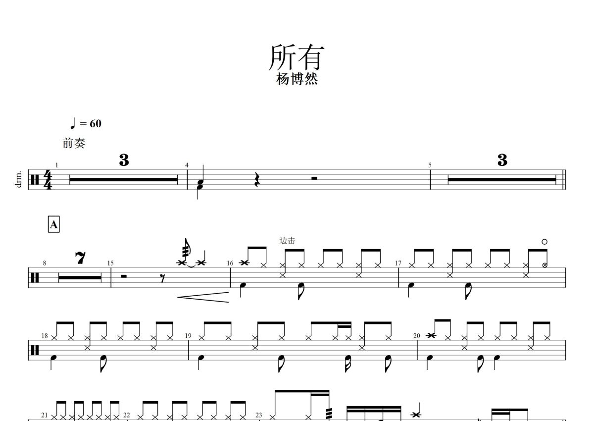 杨博然《所有》鼓谱 - 架子鼓谱
