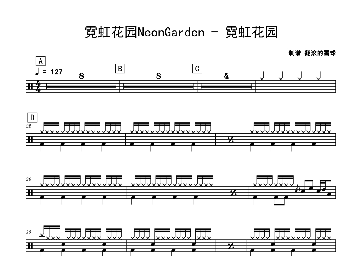 霓虹花园NeonGarden《霓虹花园》鼓谱 - 架子鼓谱