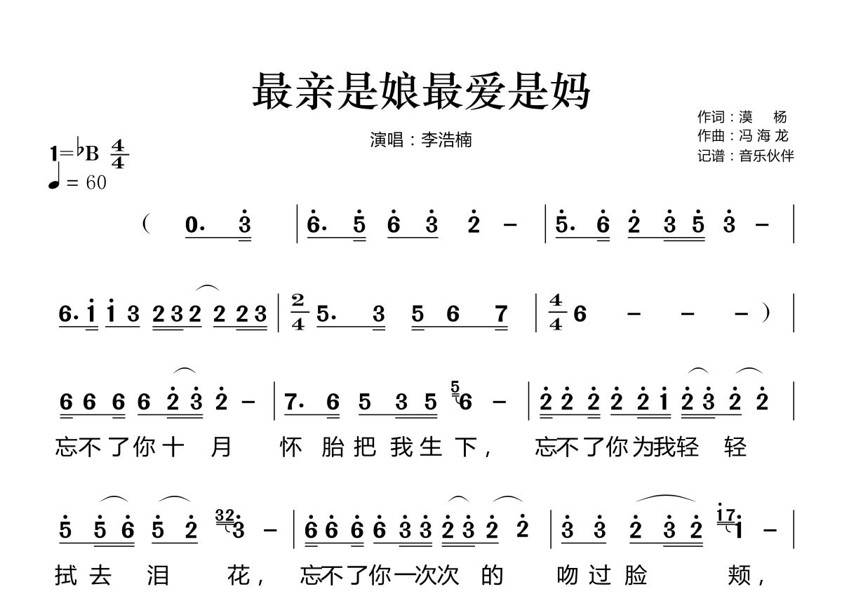 最亲是娘最爱是妈简谱 - 李浩楠演唱