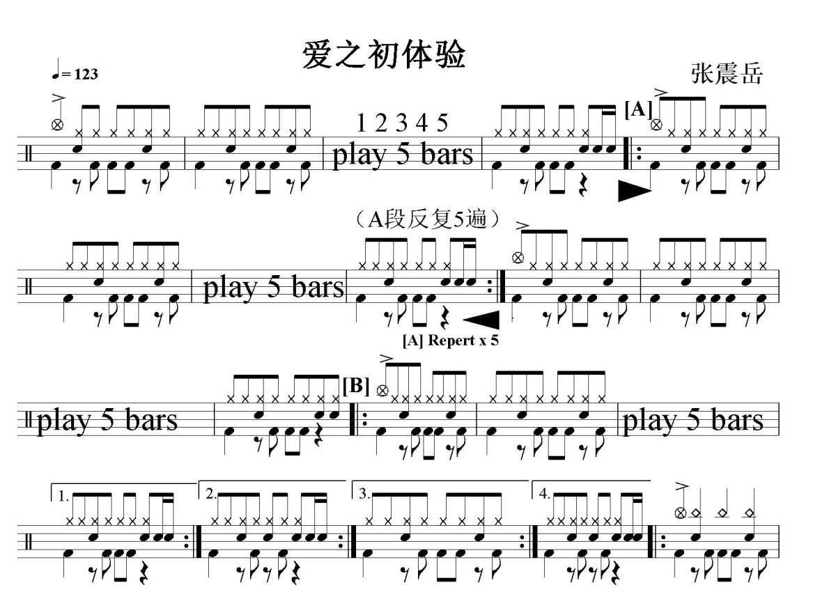 张震岳《爱之初体验》鼓谱 - 架子鼓谱