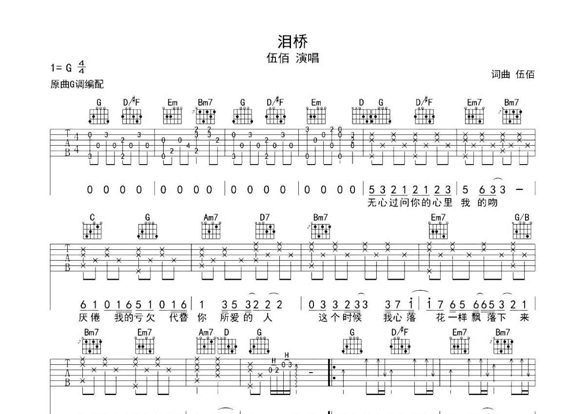 伍佰《泪桥》吉他谱 - G调弹唱六线谱