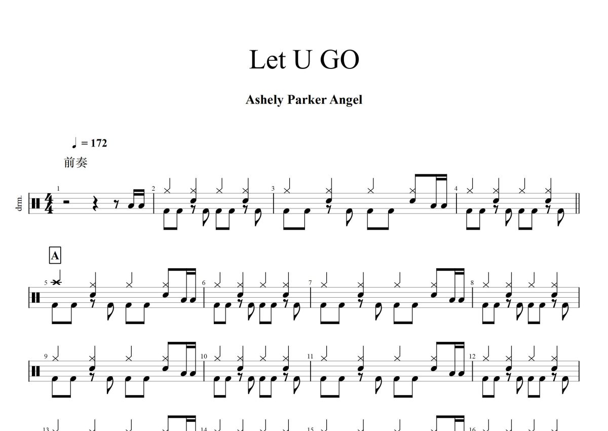 Ashely Parker Angel《Let U GO》鼓谱 - 架子鼓谱