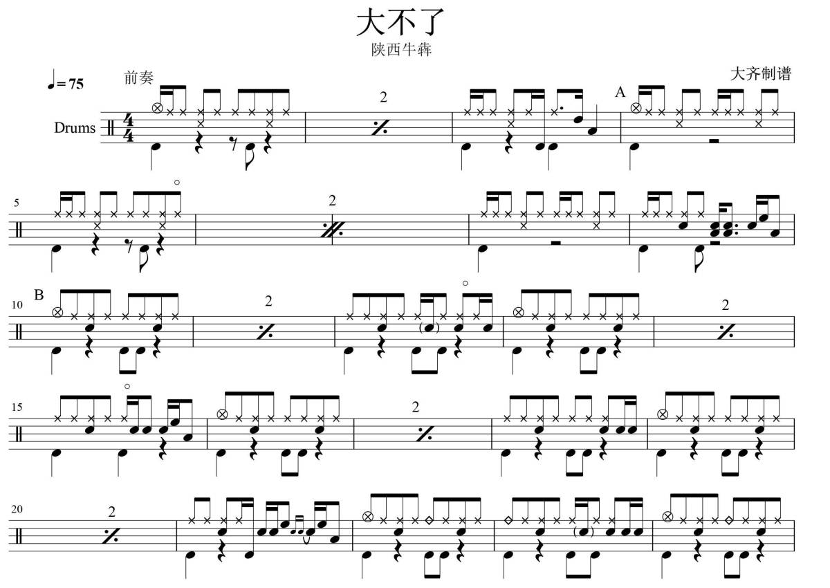 陕西牛犇《大不了》鼓谱 - 架子鼓谱