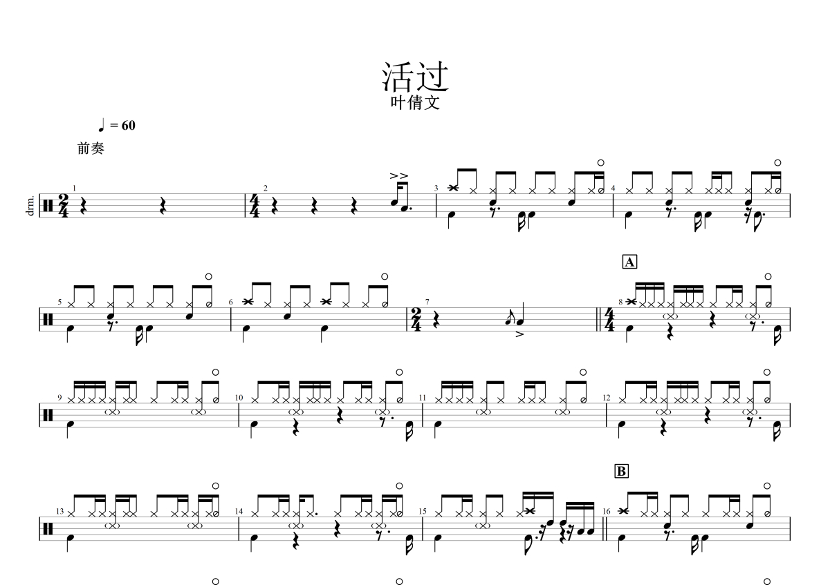 叶蒨文《活过》鼓谱 - 架子鼓谱