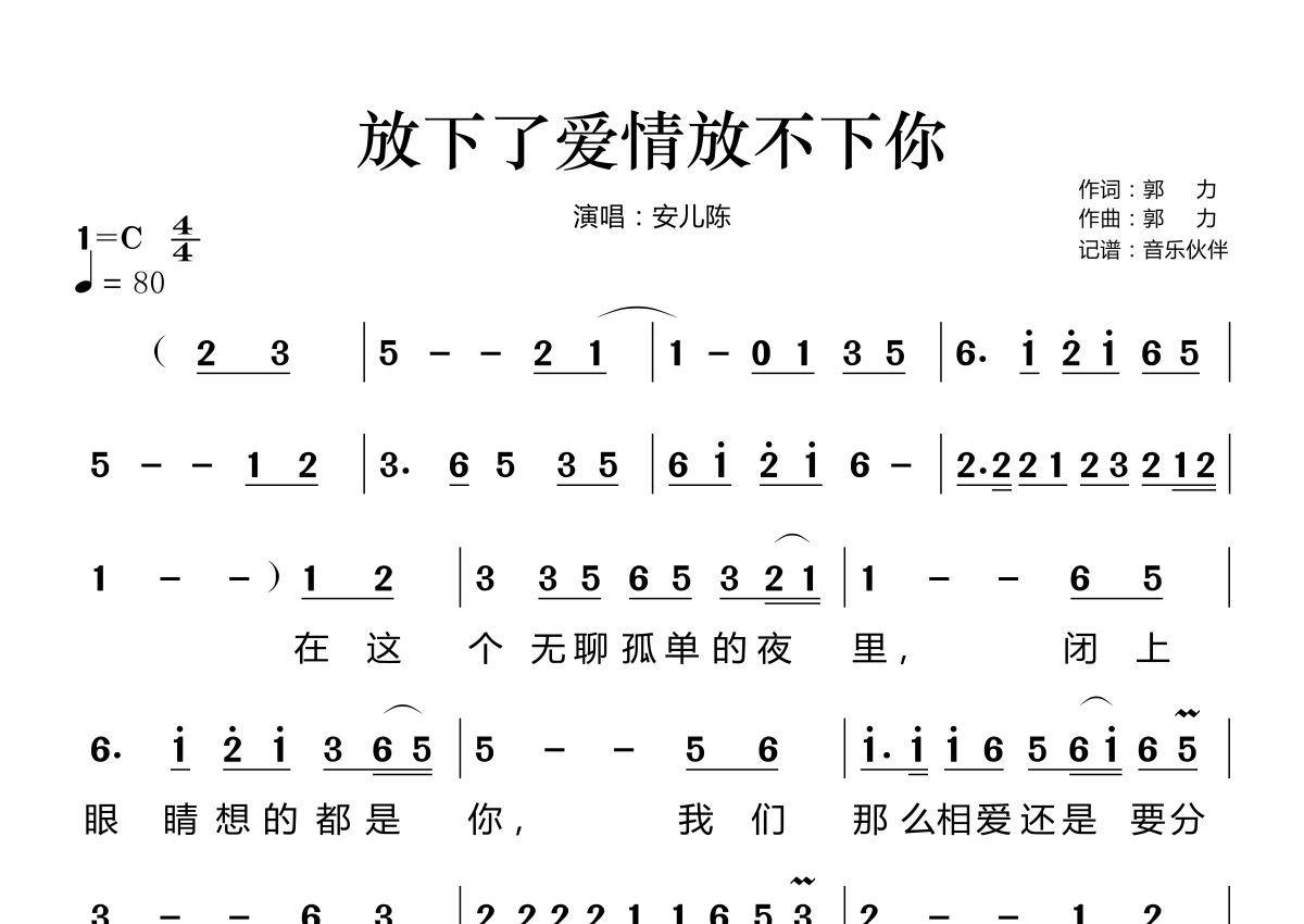 放下了爱情放不下你简谱 - 安儿陈演唱