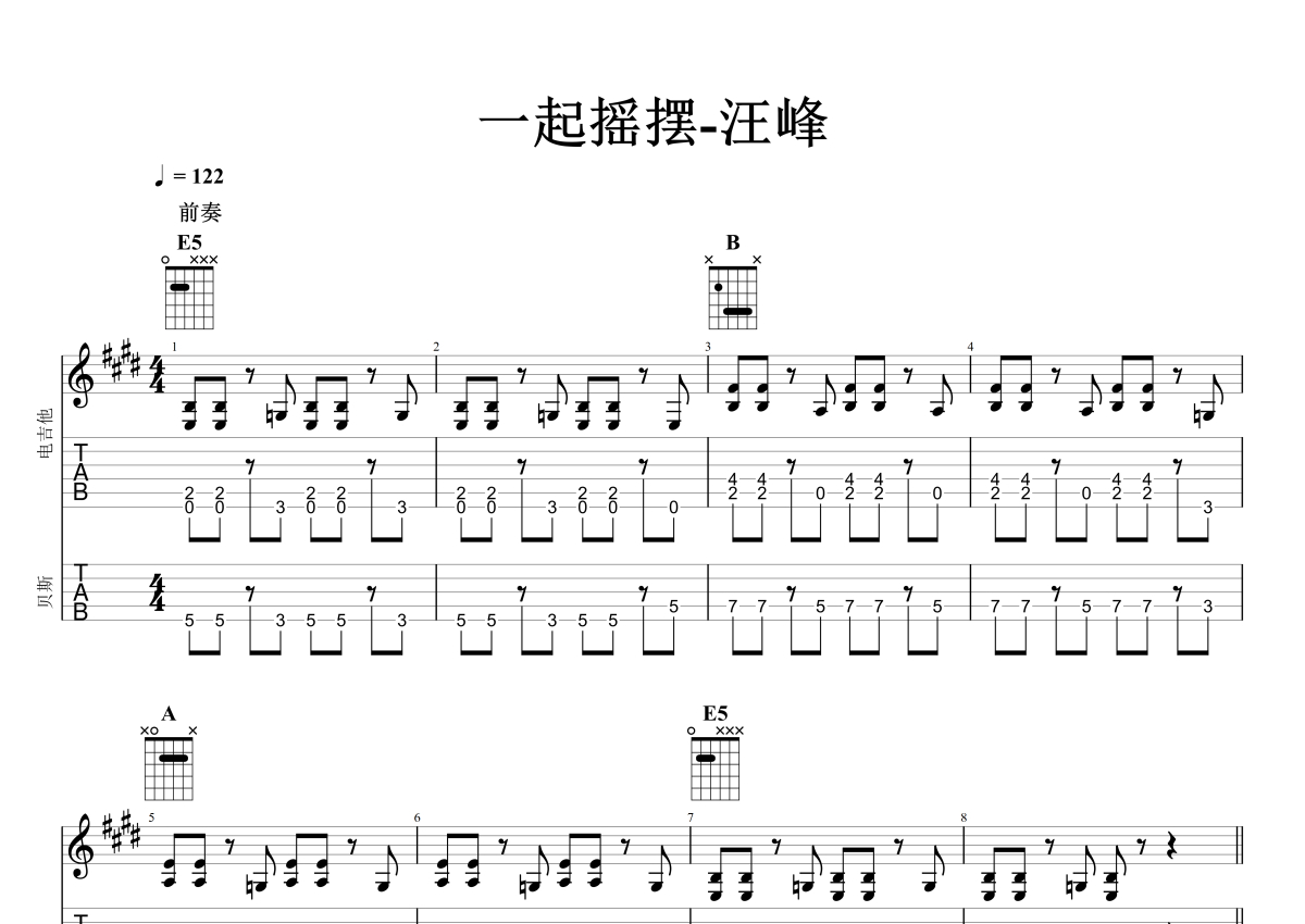汪峰《一起摇摆》吉他谱 - E调合奏谱 - 石头音乐原版记谱