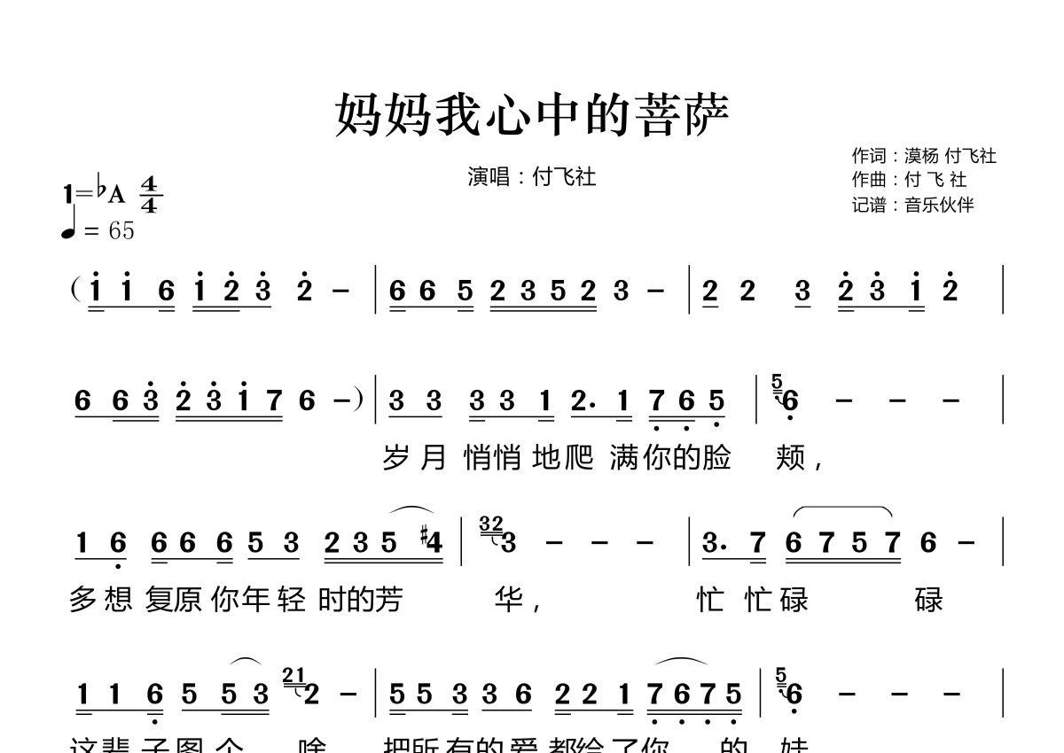 妈妈我心中的菩萨简谱 - 付飞社演唱
