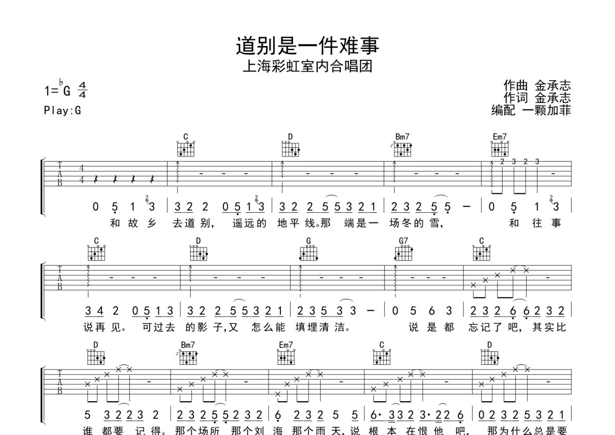 上海彩虹室内合唱团《道别是一件难事》吉他谱 - G调弹唱六线谱