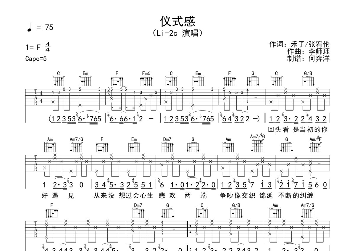 Li-2c《仪式感》吉他谱 - C调弹唱六线谱
