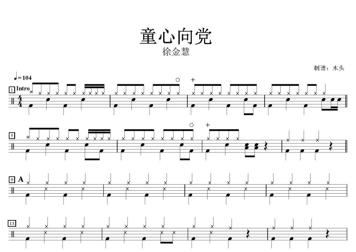徐金慧《童心向党》鼓谱 - 架子鼓谱