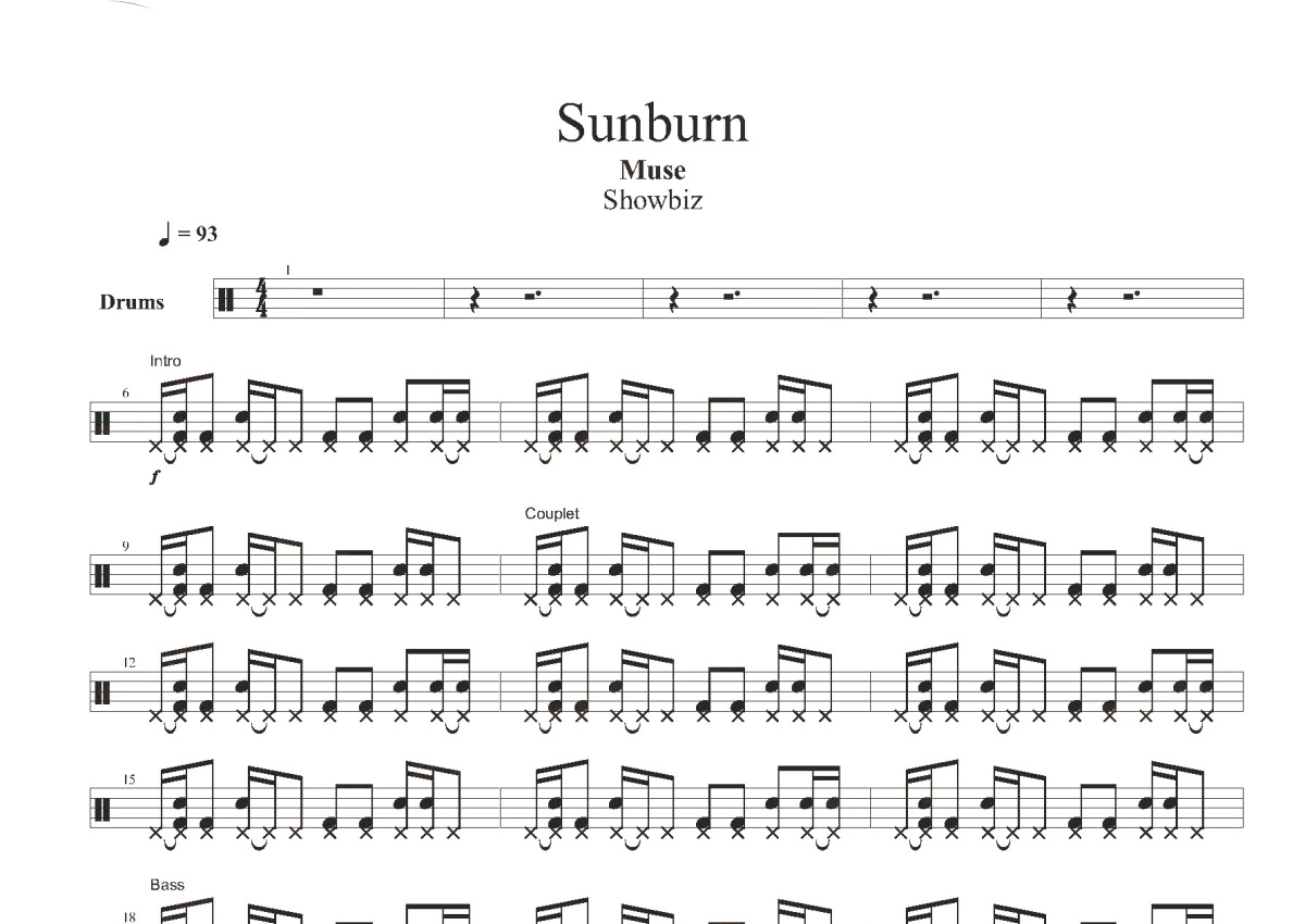 Muse《Sunburn》鼓谱 - 架子鼓谱