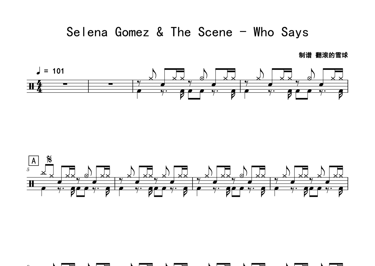 Selena Gomez & The Scene《Who Says》鼓谱 - 架子鼓谱