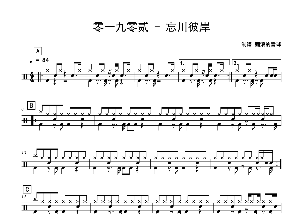 零一九零贰《忘川彼岸》鼓谱 - 架子鼓谱