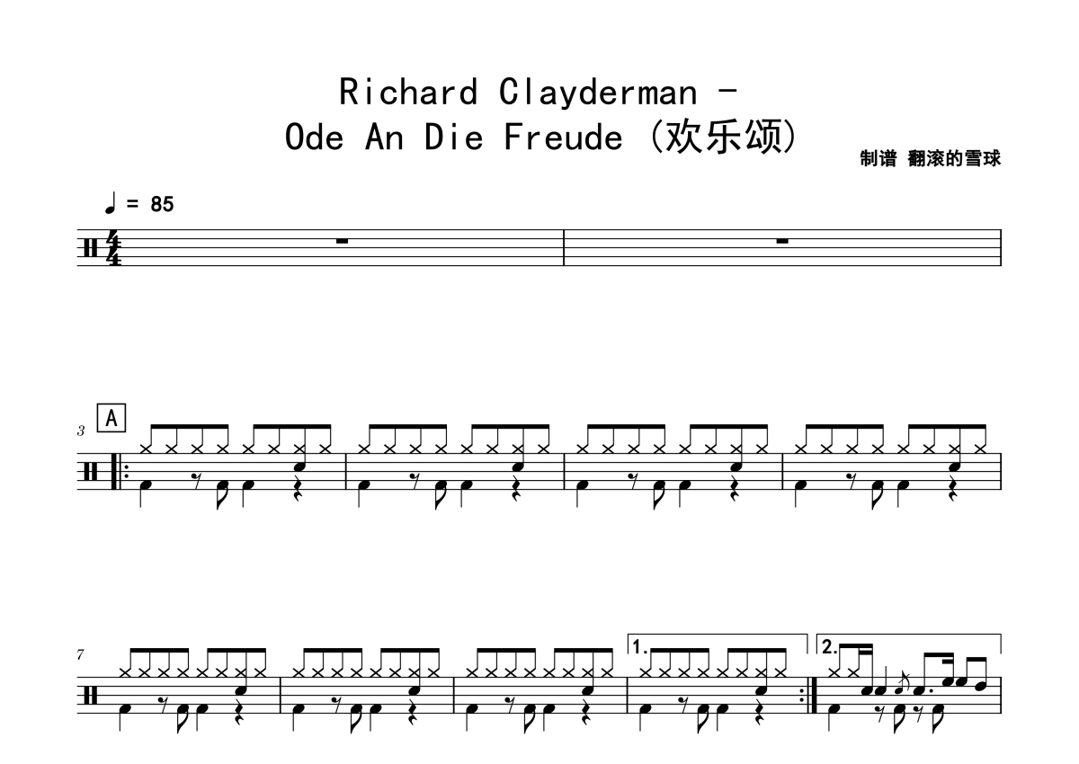 Richard Clayderman《Ode An Die Freude (欢乐颂)》鼓谱 - 架子鼓谱