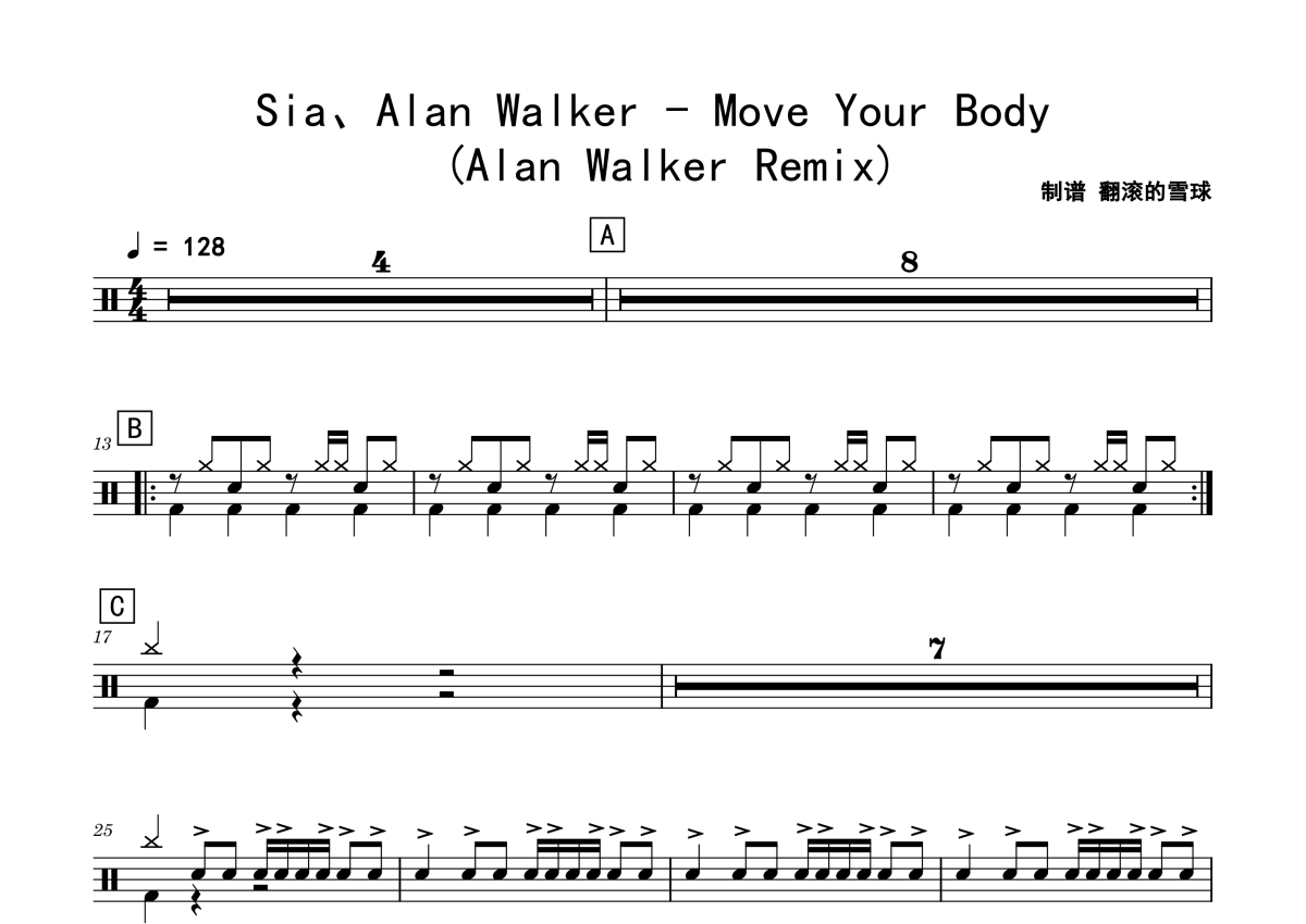 Sia、Alan Walker《Move Your Body (Alan Walker Remix)》鼓谱 - 架子鼓谱