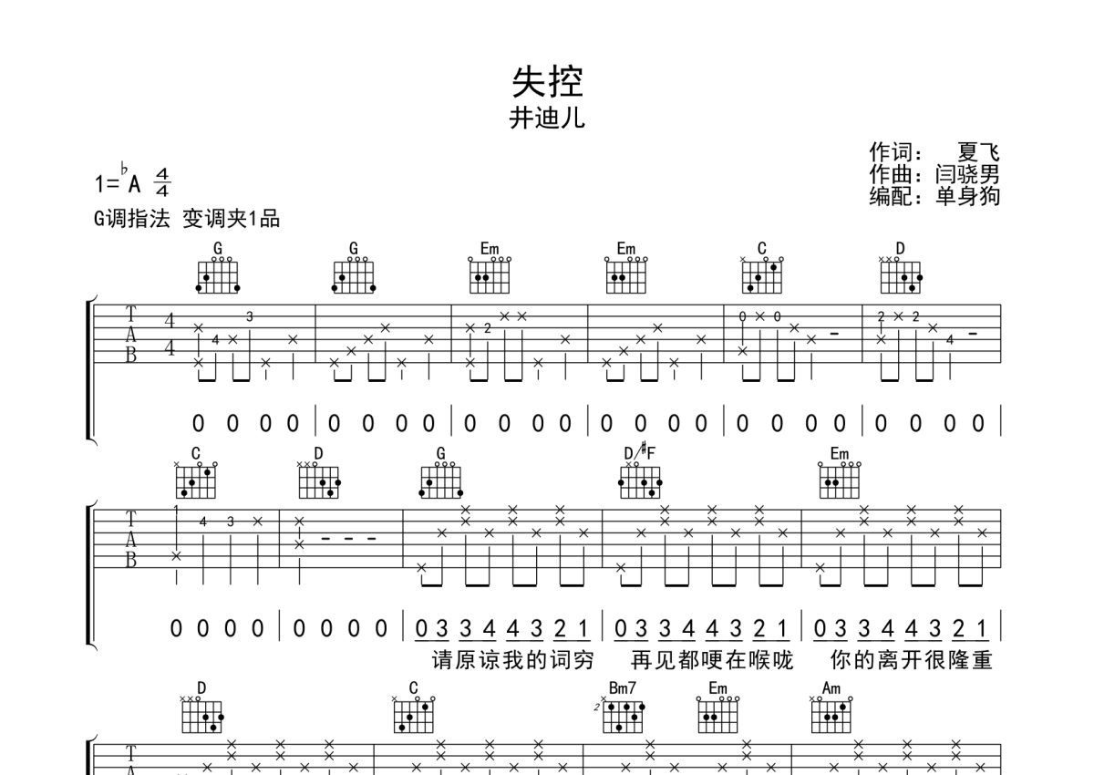 井迪儿《失控》吉他谱 - G调弹唱六线谱