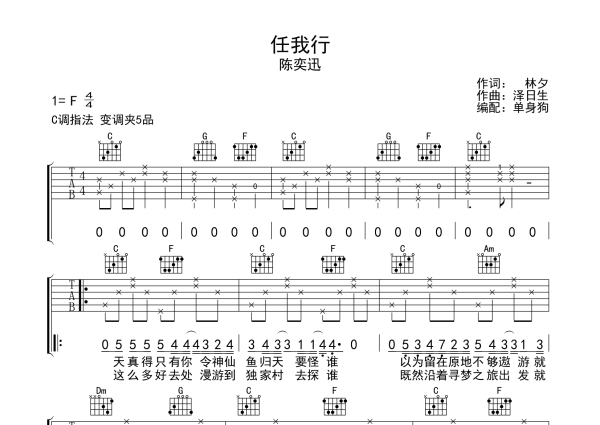 陈奕迅《任我行》吉他谱 - C调弹唱六线谱
